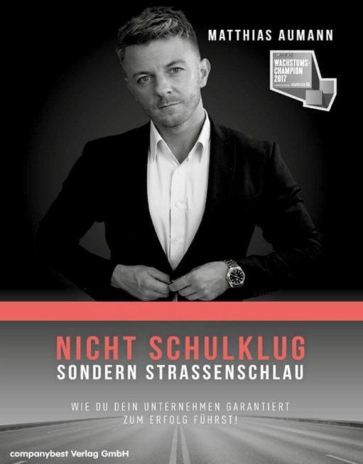 Matthias Aumann erfolgreicher Unternehmer: Er ist Inhaber der Aumann Grün AG, welche 2017 vom Focus Magazin als Wachstums-Champion ausgezeichnet wurde. In seinem Buch gibt er dir das Insider Wissen, welches dir nicht in der Schule beigebracht wurde. Dabei erzählt er aus eigener Erfahrung, denn es ist am Anfang ohne Hilfe nicht einfach, Unternehmer zu werden.